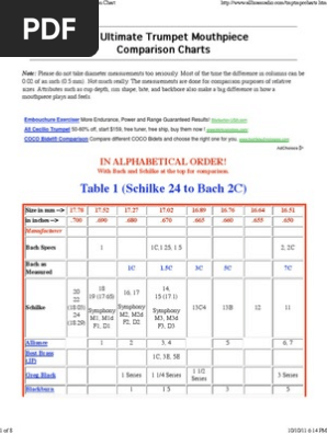 Trumpet Mouthpiece Comparison Chart built by Russell Dixon. There are two main reasons for this. 1778 1752 1727 1702 1689 1676 1664 1651 Bach 1 1C125 15 2 2C Schilke 20 22 1803 24 1829 18 19 1765 Symphony M1 M1d F1 D1 16 17 Symphony M2 M2d F2 D2 14 15 171 Symphony M3 M3d F3 D3 13C4 13B 12 11 Best Brass JP 1C 3E 5E Greg Black 1 1 14 1 12 3 Blackburn 1 15 3.