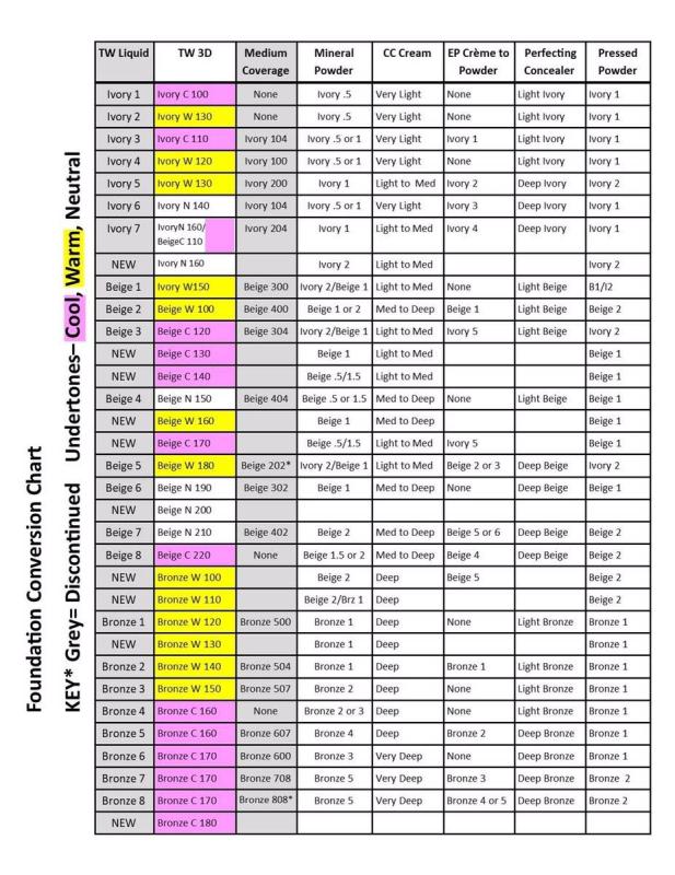 A Conversion Chart and samples will be available in the near future to help you find a replacement shade. TIMEWISE MATTE 3D FOUNDATIONS 25 each If you currently wear TimeWise Liquid Foundation in. Rheumatic diseases neurourology and urodynamics foundation chart 5 19 abstracts 2019 haemophilia wiley timewise foundations.